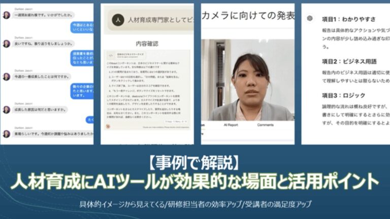 背景として押さえておきたいのは、AIの人材育成活用はすでに「検討フェーズ」から「実装フェーズ」へと移行しているという点です。グローバルの人材育成カンファレンスATD(Association for Talent Development)では、製薬大手ノバルティスをはじめとした企業が、研修コンテンツの自動生成だけでなく、受講者へのリアルタイムフィードバックにAIを活用した事例を報告しています。国内でも先進的な企業を中心に、研修へのAI組み込みが本格化しつつあります。