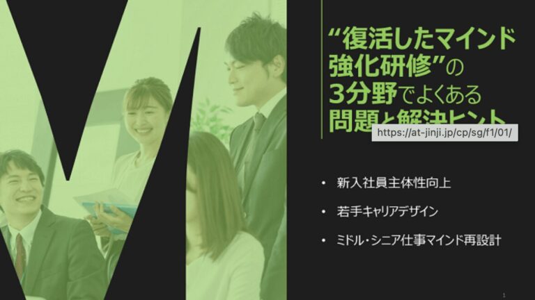 この数ヶ月で「マインド系の研修」に関する問い合わせと相談が急増しています。特に多いニーズは新入社員向けの主体性向上、若手社員向けのキャリアデザイン、そしてミドル・シニア社員向けの仕事マインド再設計という3つの分野です。